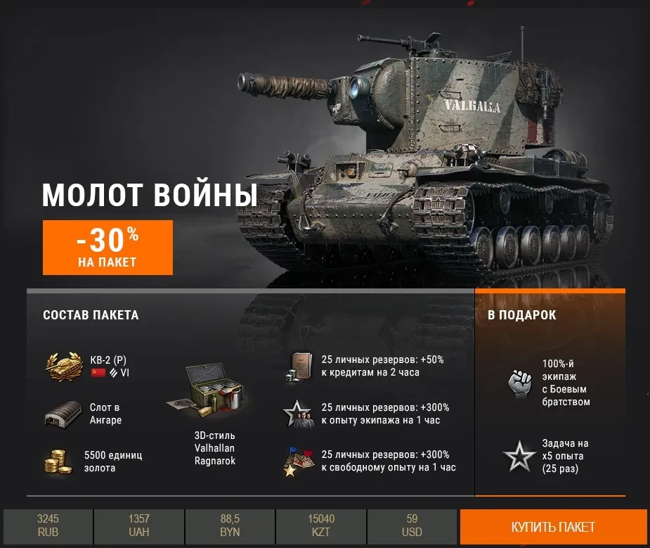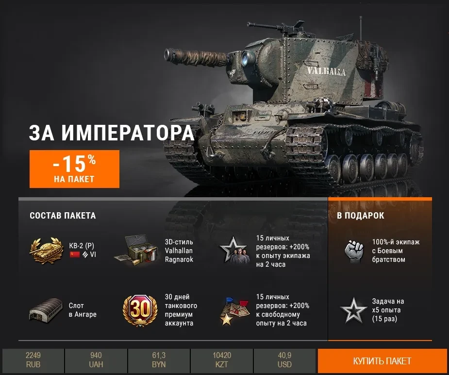 - прем танк 6 лвл КВ-2 (Р) Valhallan Ragnarok
