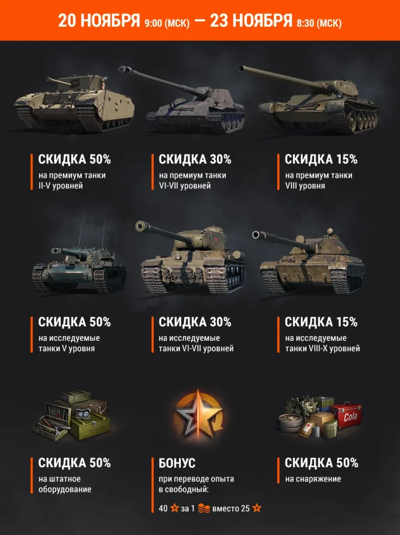 С 20 ноября 09:00 (МСК) по 23 ноября 08:30 (МСК) в World of Tanks вас ожидает: