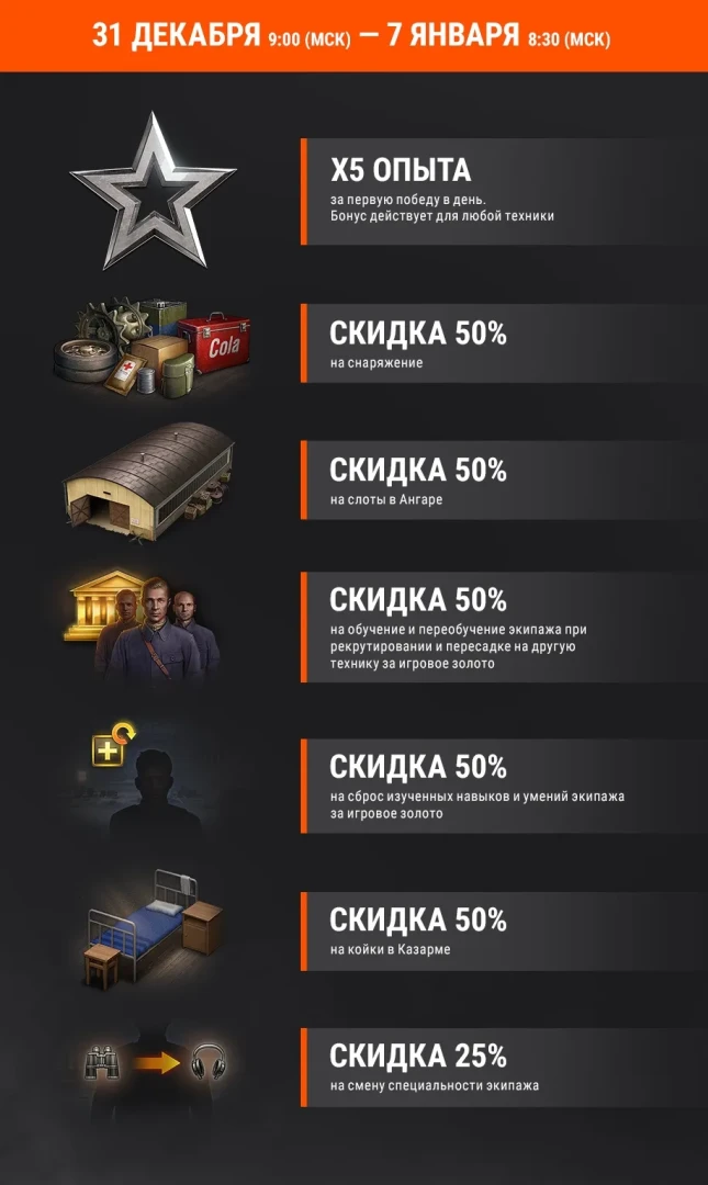 С 31 декабря 09:00 (МСК) 2020 г. по 7 января 08:30 (МСК) 2021 г. вас ожидает:
