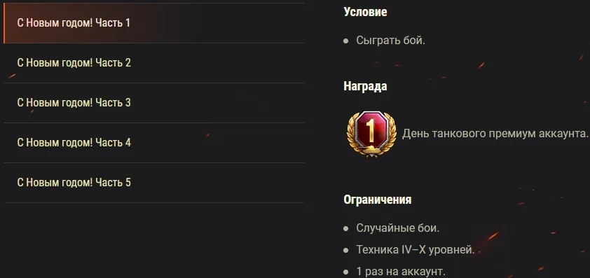 Акция «С Новым годом!»: x5, скидки, 1 день према (БЗ) и боевые задачи.