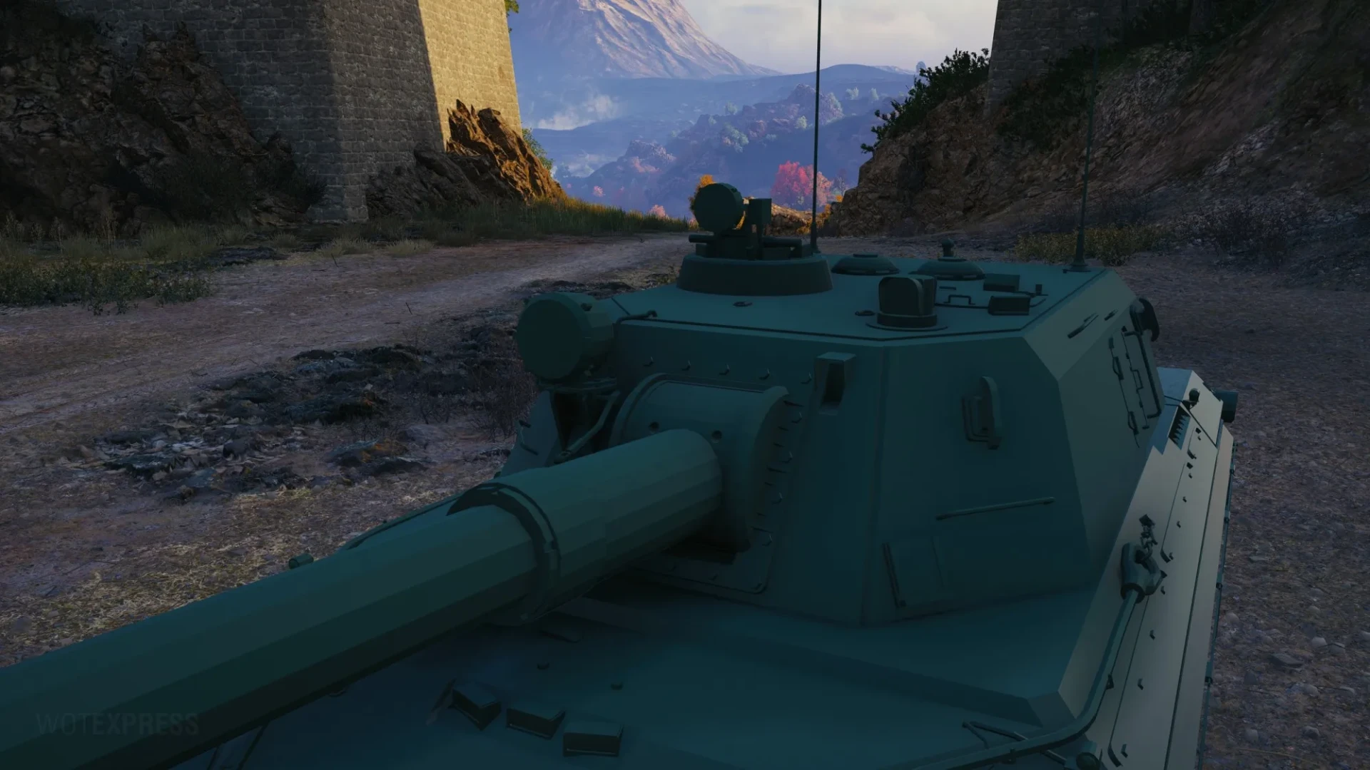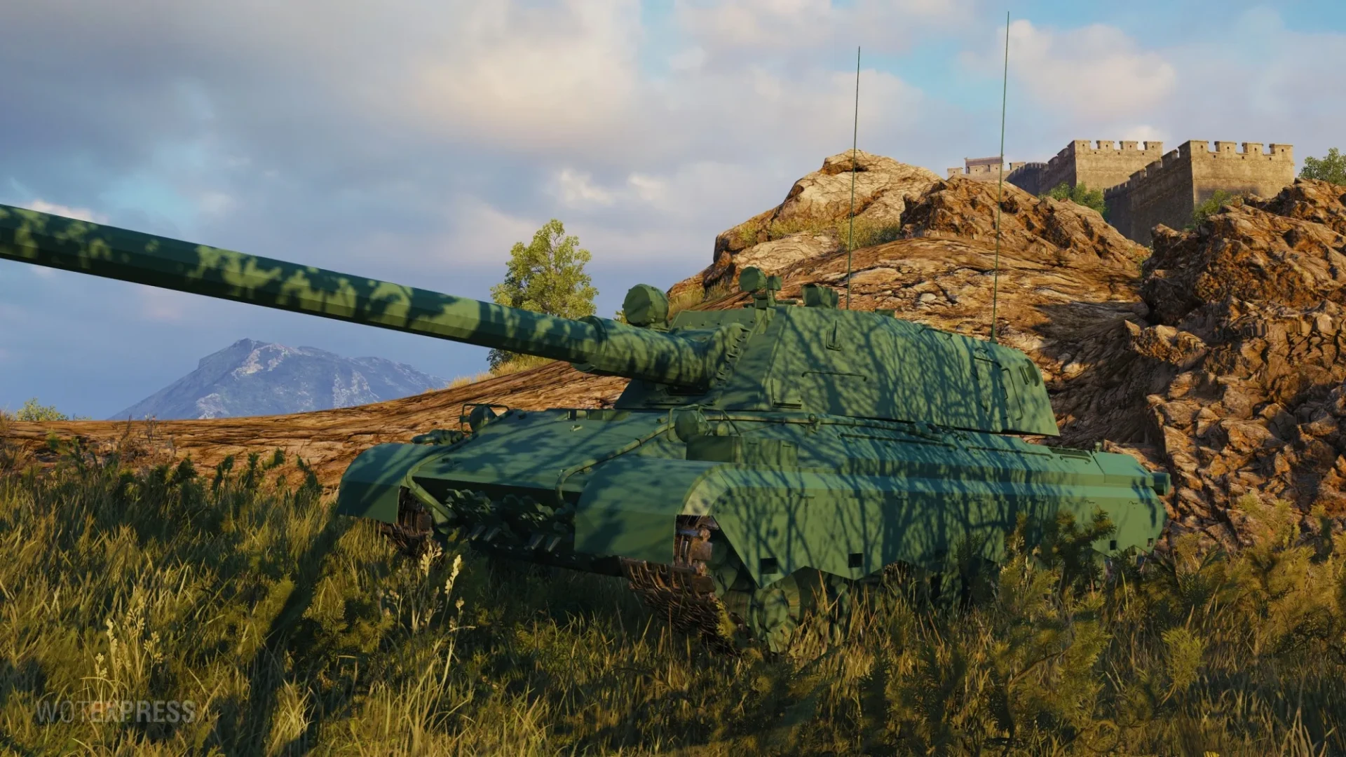 114 SP2 (Китай, ПТ-10, акционная) в игровых скриншотах WOrld of Tanks на отдыхе ищет кустики.
