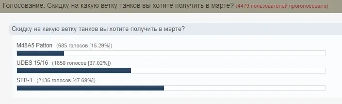 В марте 2021 (с 1 по 31) будет акции «В бой на...» и скидки на ветку во главе с STB-1.