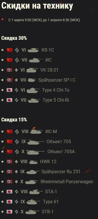 С 1 марта до 1 апреля 2021 г. скидки и боевые задачи в новом формате сразу для трёх веток в World of Tanks!
