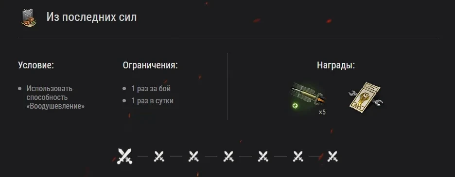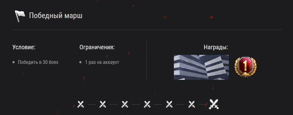 В этой итерации вас ждут ценные награды, среди которых будет множество предбоевых инструкций, личных резервов, кредитов и день танкового премиум аккаунта. Но самым желанным призом станет отличный 2D-стиль «Ослепляющий» (ссылка) — финальная награда для самых упорных и умелых бойцов.