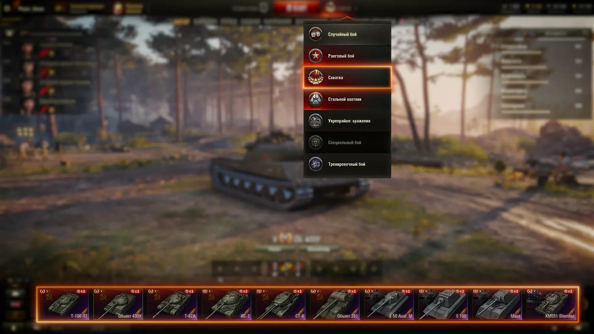 Для участия в режиме «Схватка» игроку достаточно иметь в Ангаре хотя бы одну машину X уровня. Если у вас такой ещё нет, вы можете арендовать одну из нижеуказанных машин: