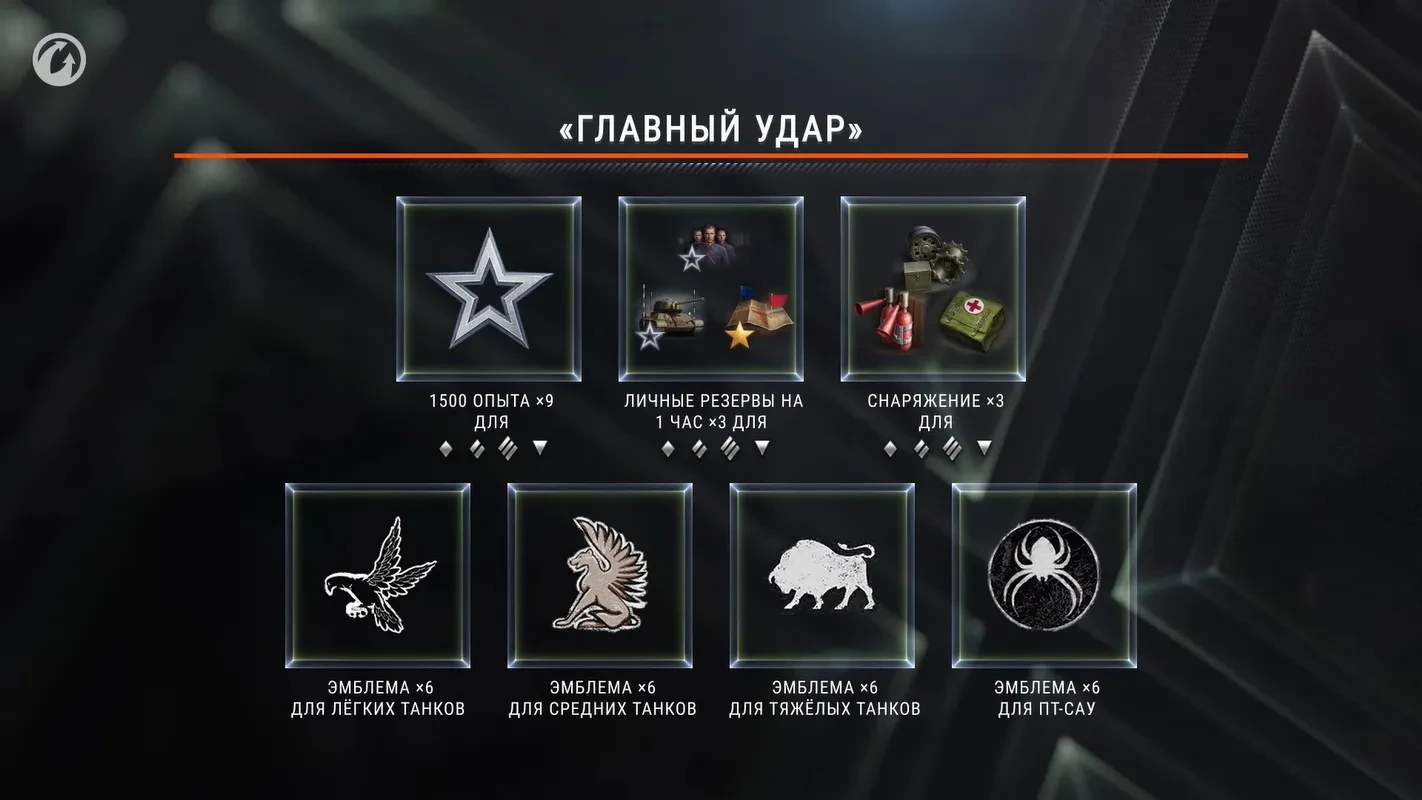 - Снаряжение x3 для: ЛТ, СТ, ТТ и ПТ