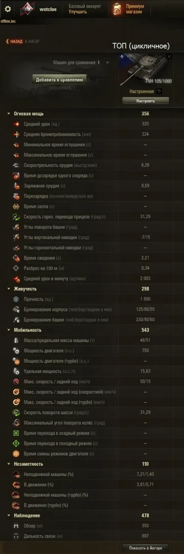 При просмотре ТТХ обращайте внимание на два орудия, которые имеет танк. В первую очередь на барабан на 2 снаряда — как уникальное.
