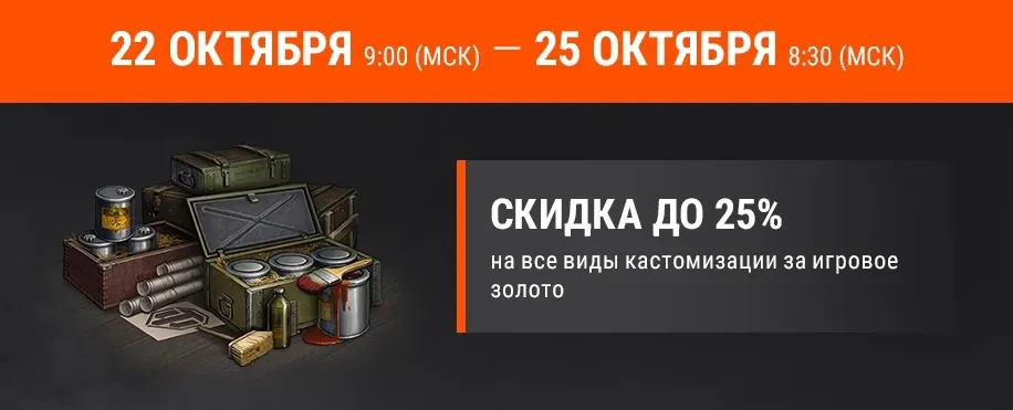 С 22 октября 09:00 (МСК) по 25 октября 08:30 (МСК) в World of Tanks вас ожидает: