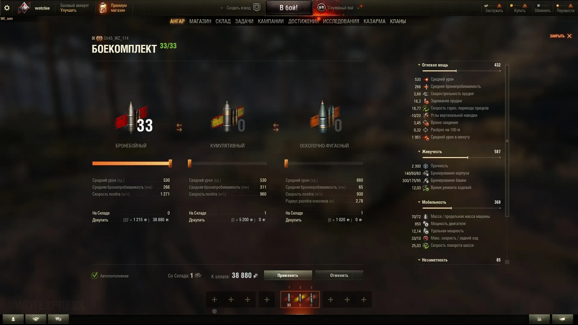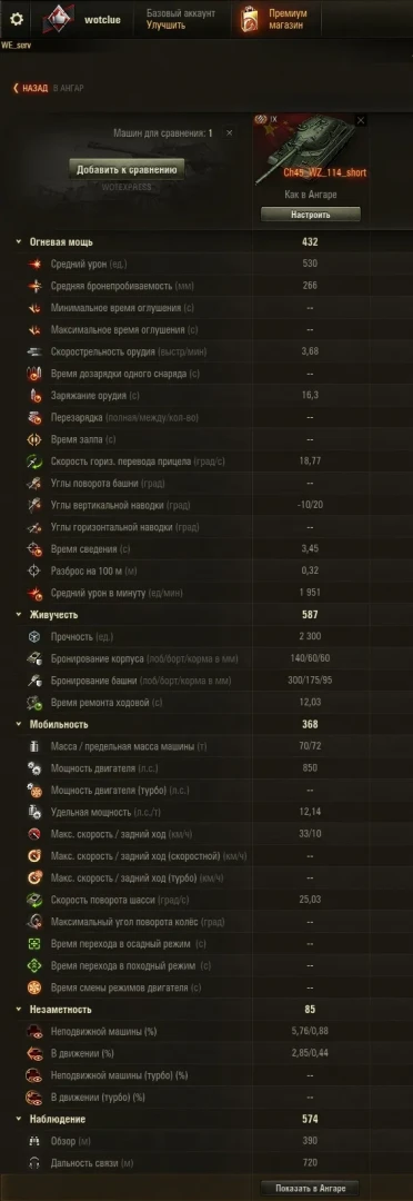 Сегодня днём на супертест WOT вышли правки нового тестируемого према Китая 8 ур. — WZ-114.