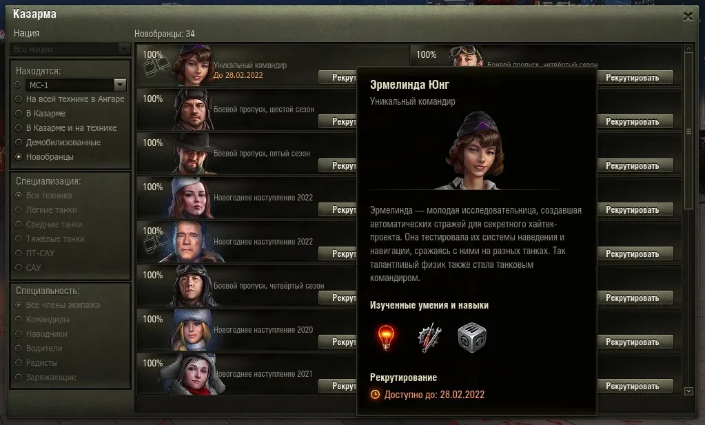 [28 февраля] Пропадёт возможность рекрутировать уникальную командиршу «Эрмелинда Юнг» из #31 набора «Высокое напряжение». Рекрутируйте её иначе она просто исчезнет!