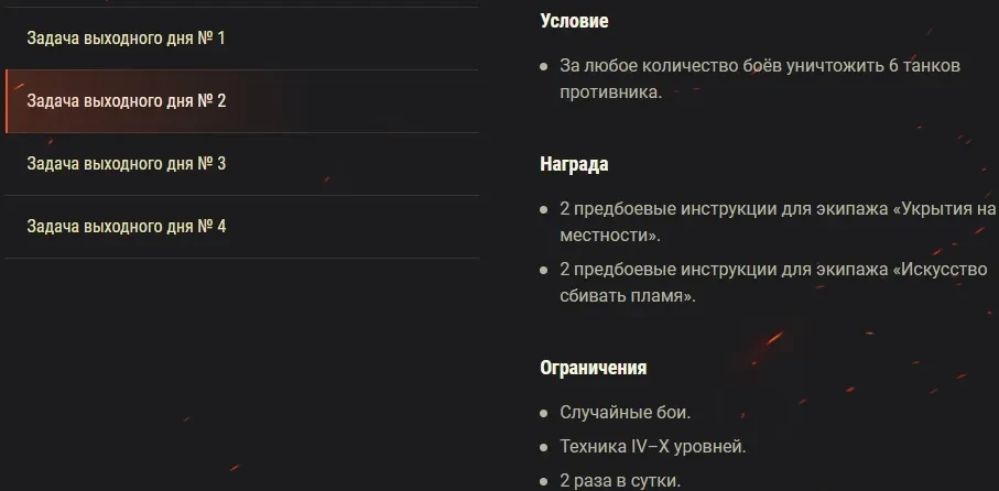 В награду вы можете получить предбоевые инструкции, снаряжение, личные резервы и бонус к опыту экипажа.
