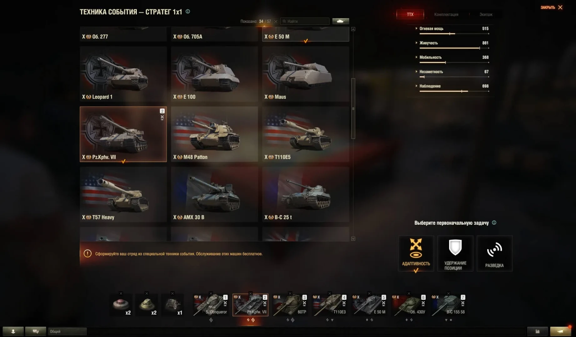 Один из способов превзойти своего противника — иметь чёткий план еще до начала сражения. Несмотря на то, что состав отряда и объектов собран заранее, вы можете заменить некоторые или даже все машины в отряде — воспользуйтесь этой возможностью, чтобы собрать идеальный отряд из танков, которые хорошо знаете.