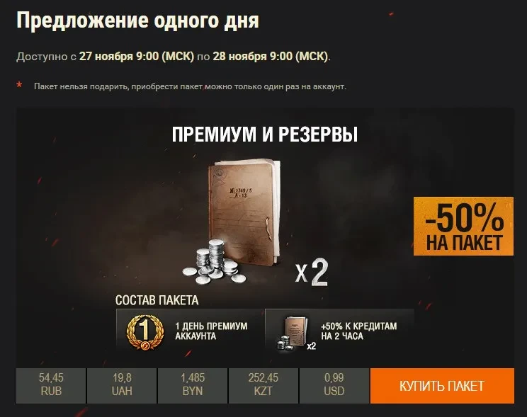 Предложение одного дня сегодня в рамках «чёрной пятницы» WoT
