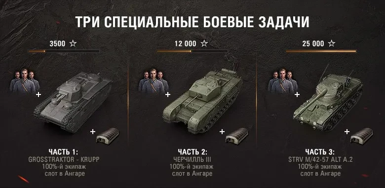 Эй, как насчёт поучаствовать в «регулярке»? Сомневаешься? Никак не поймёшь, зачем тебе это надо? Ну так вот что: мы предлагаем тебе три боевые задачи, за выполнение каждой из которых ты получишь премиум танк.