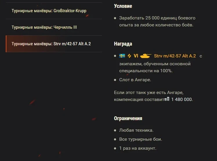 * Специальные боевые задачи для регулярных турниров доступны с 16 января 9:00 (МСК) до 13 февраля 8:30 (МСК). Чтобы их активировать, тебе нужно сыграть один бой в любом турнире на любой технике.