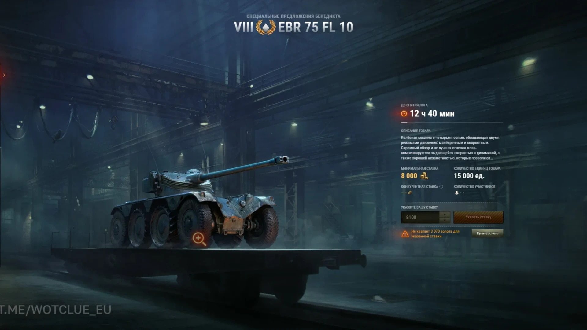 Аукцион WoT EU 2026 (1 лот): Танк Panhard EBR 75 (FL 10).