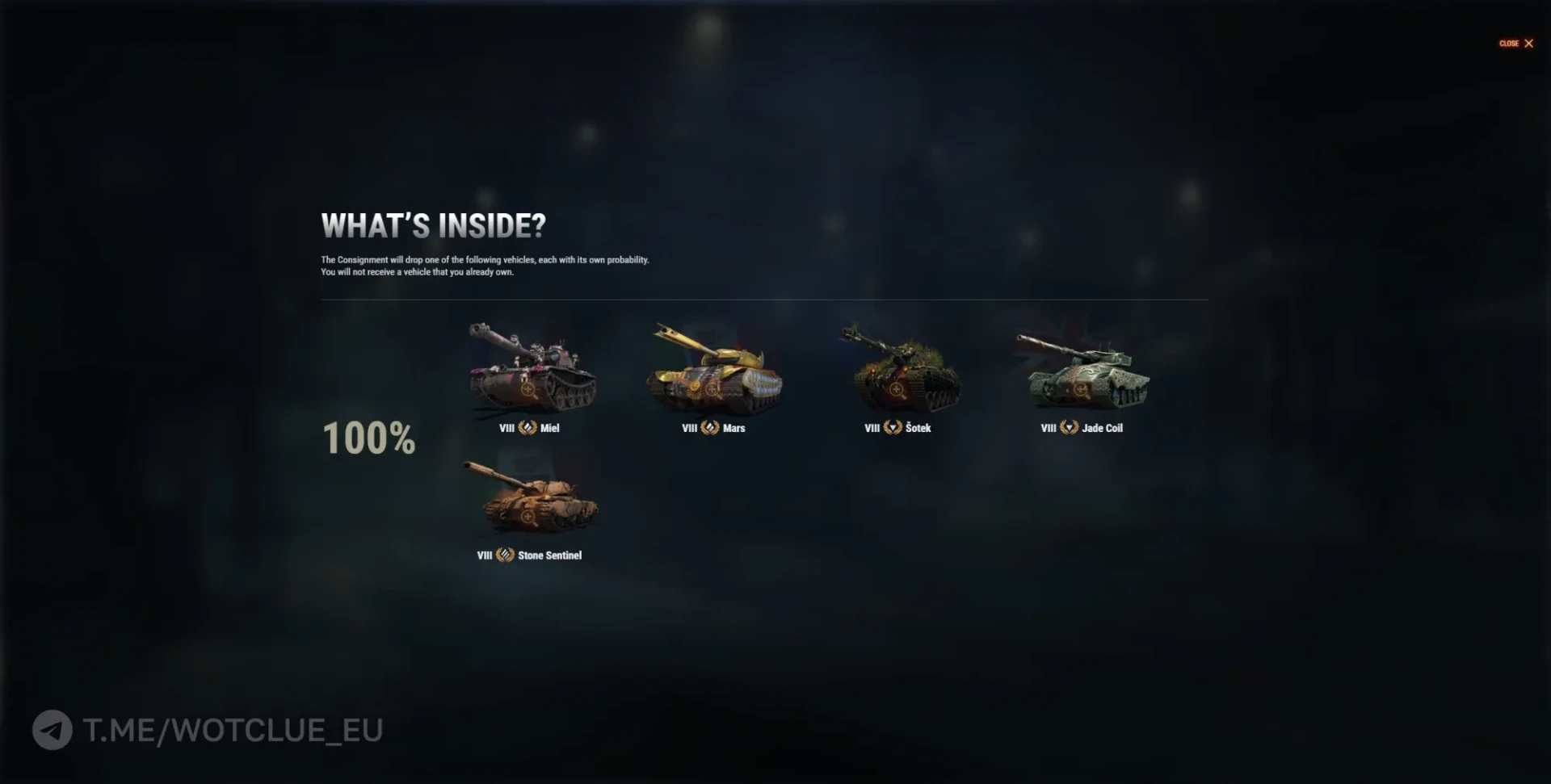 Лот: 1 из 5 гарантированных танков (танк которого у вас нет выпадет первым):