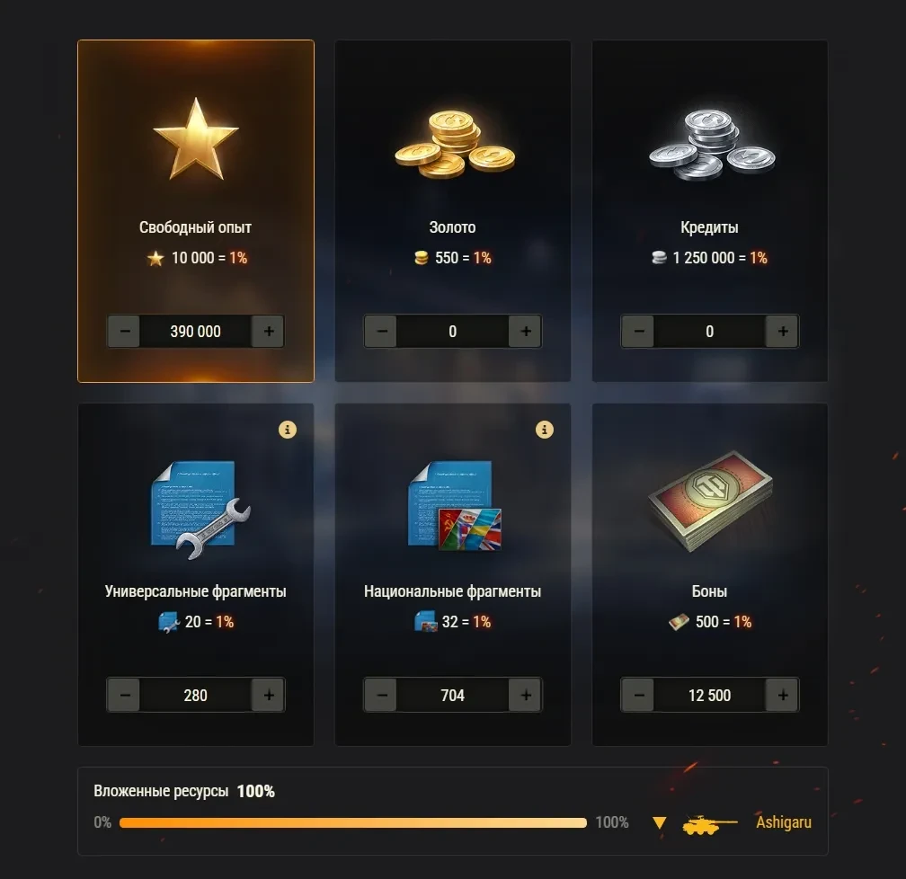 • Вкладывайте ресурсы: используйте фрагменты чертежей, свободный опыт, кредиты, золото и боны, чтобы собрать Ashigaru.
