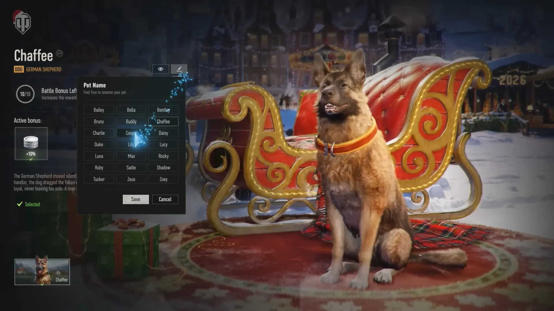 Первый питомец — оставьте Чаффи навсегда в Новогоднем наступлении 2026 World of Tanks