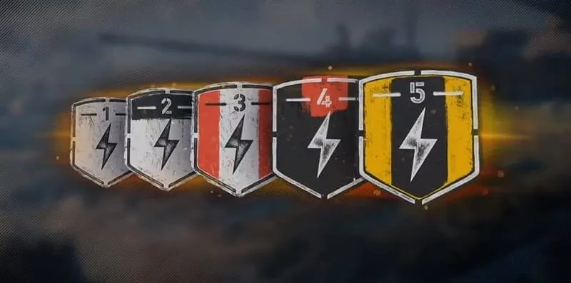 Также мы добавим в игру новую этапную декаль — Ранговый разряд. При выполнении определённых условий при игре в ранговых боях этап вашей декали будет возрастать, а внешний вид меняться.