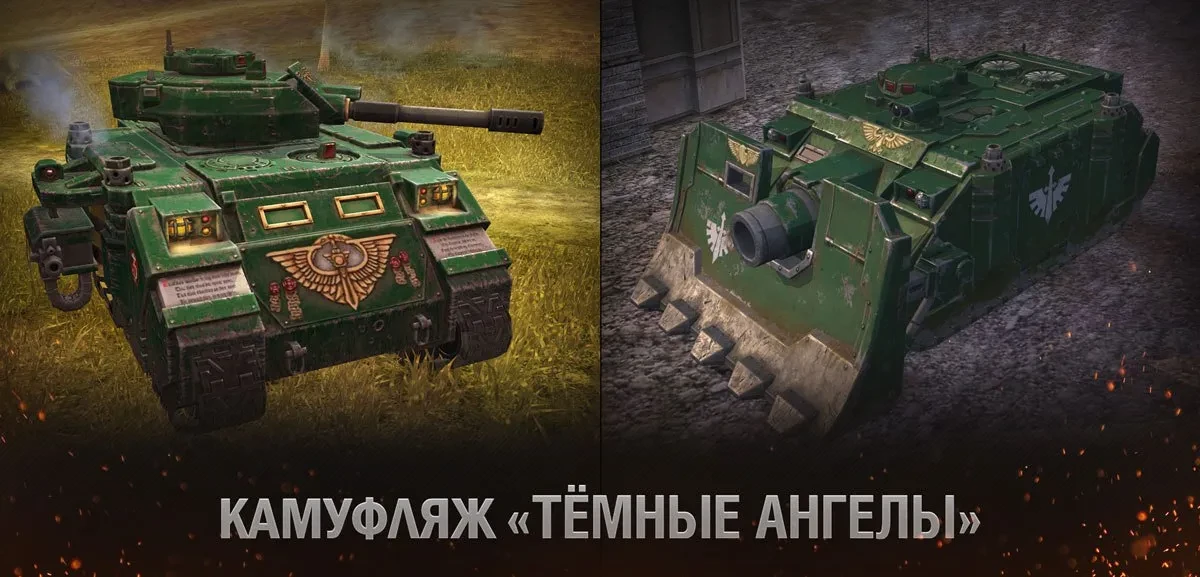 * Легендарный камуфляж — цвета легионов Имперских кулаков и Тёмных ангелов.