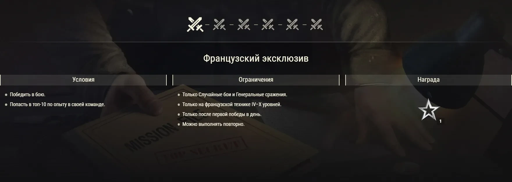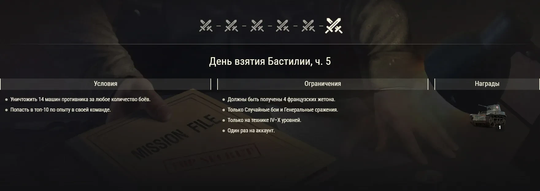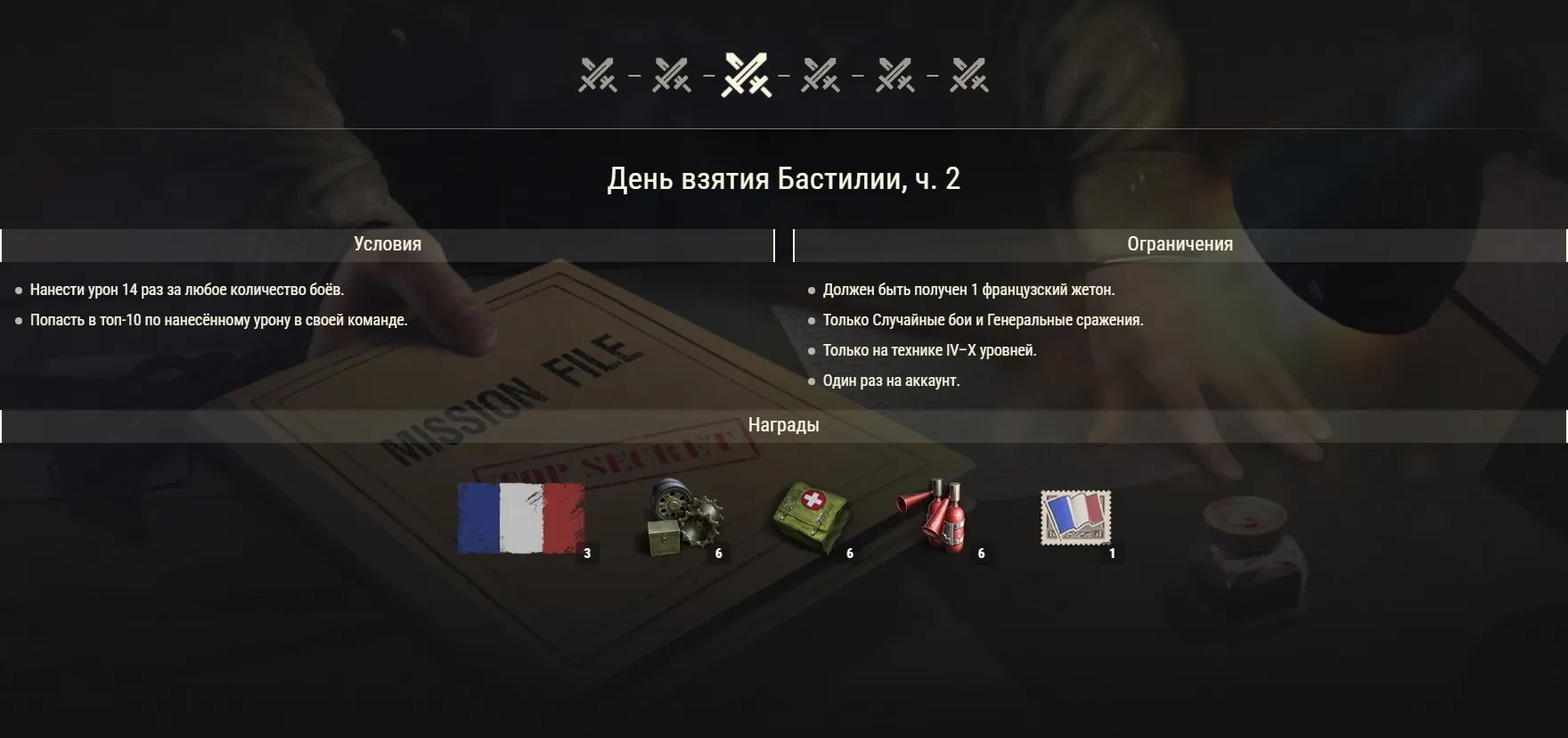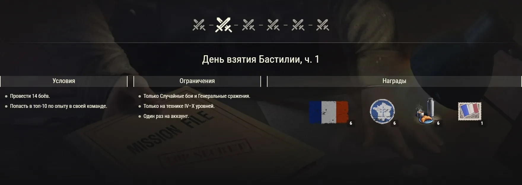 Выполняйте особые боевые задачи, чтобы заработать машину AMR 35, французские тематические элементы внешнего вида, в том числе новый 2D-стиль «14 Juillet», личные резервы и другие награды. C'est magnifique!