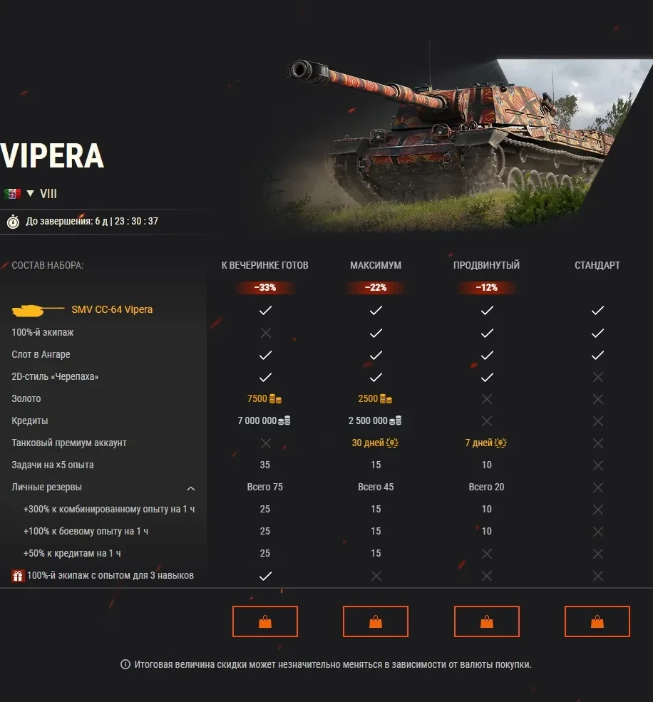 Коварная VIII SMV CC-64 Vipera, классический VIII Type 59, редкий IX FV4201 Chieftain Proto, надёжный VIII Progetto M35 mod. 46 и ещё 14 машин прямо сейчас продаются со скидками!