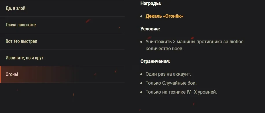 Цепочка боевых задач, за выполнение которых вы получите забавные декали. Выполняйте задачи по порядку, чтобы открывать следующие.