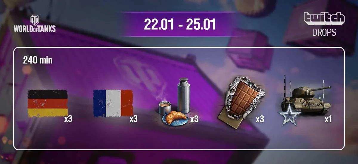 Смотрите своих любимых немецких и французских стримеров и отметьте 61 год франко-германской дружбы с ценными наградами Twitch Drops. Это прекрасная возможность отпраздновать и одновременно заполучить кое-что для Ангара, например декали и снаряжение. Присоединяйтесь в течение четырёх часов, наслаждайтесь великолепной игрой и забирайте призы.