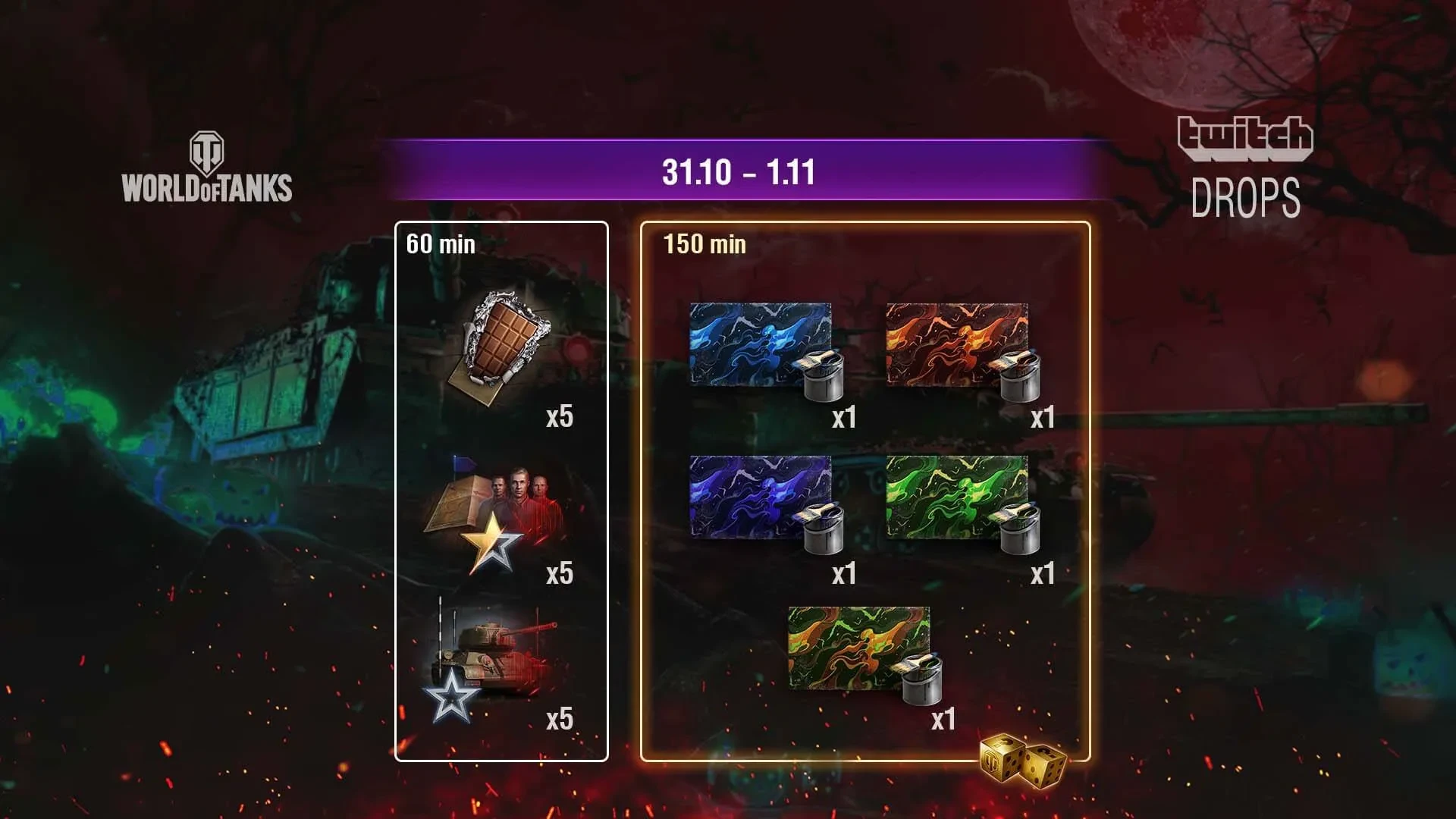 Хэллоуин — это время жутко приятных сюрпризов и наград! Не забывайте о магазине жетонов «WOT это ужас», в котором вы сможете обменять до 50 тыквенных жетонов, полученных исключительно из Twitch Drops, на игровые ценности, от которых бегут мурашки по коже.