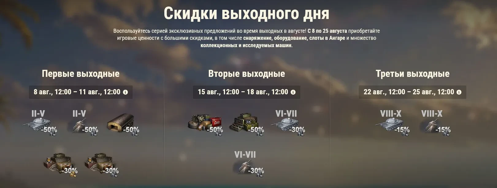 Первые выходные, 8 августа 12:00 — 11 августа 12:00 (UTC+3).