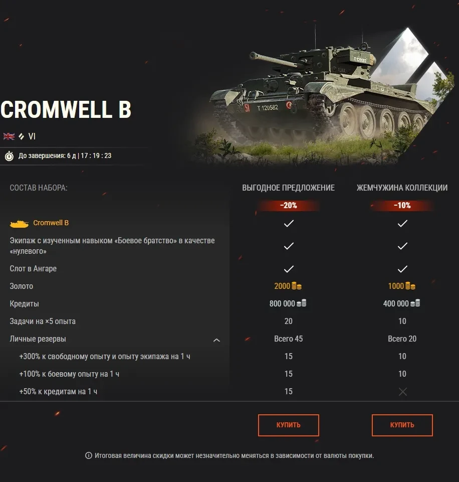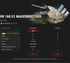 Отправляйтесь в бой на стремительном VIII Bat.-Châtillon Bourrasque. Это идеальная машина для того, чтобы шокировать соперников скоростью и огневой мощью. Обуздайте силу VIII VK 168.01 Mauerbrecher, тяжёлого танка, способного выдержать всё благодаря прочной броне и мощному орудию. И не забывайте об историческом VI Cromwell B , среднем танке, который славится своими боевыми характеристиками и скоростью.