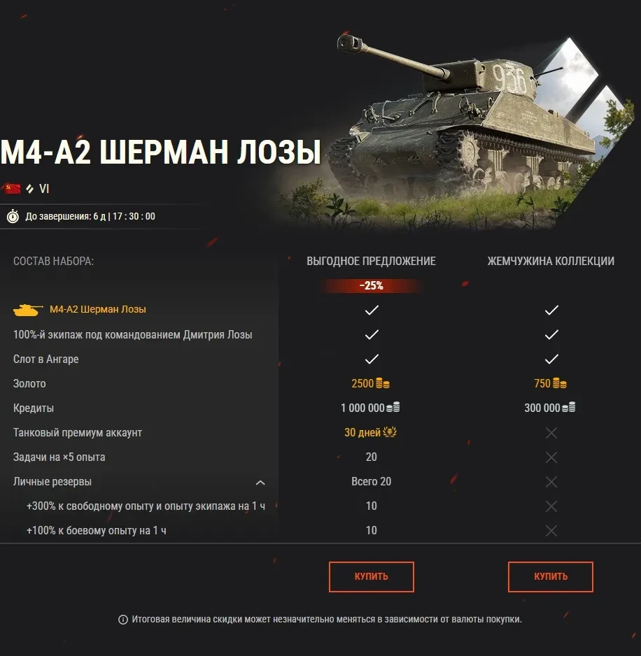 Если у вас в Ангаре нет танка Sherman (или у вас их недостаточно), не пропустите распродажу со скидками до 30%! Вы сможете приобрести наборы с тремя представителями этого большого семейства (VI М4-А2 Шерман Лозы, VI M4A3E8 Thunderbolt VII и V M4 Improved) до 13 февр., 15:00 (GMT+3).