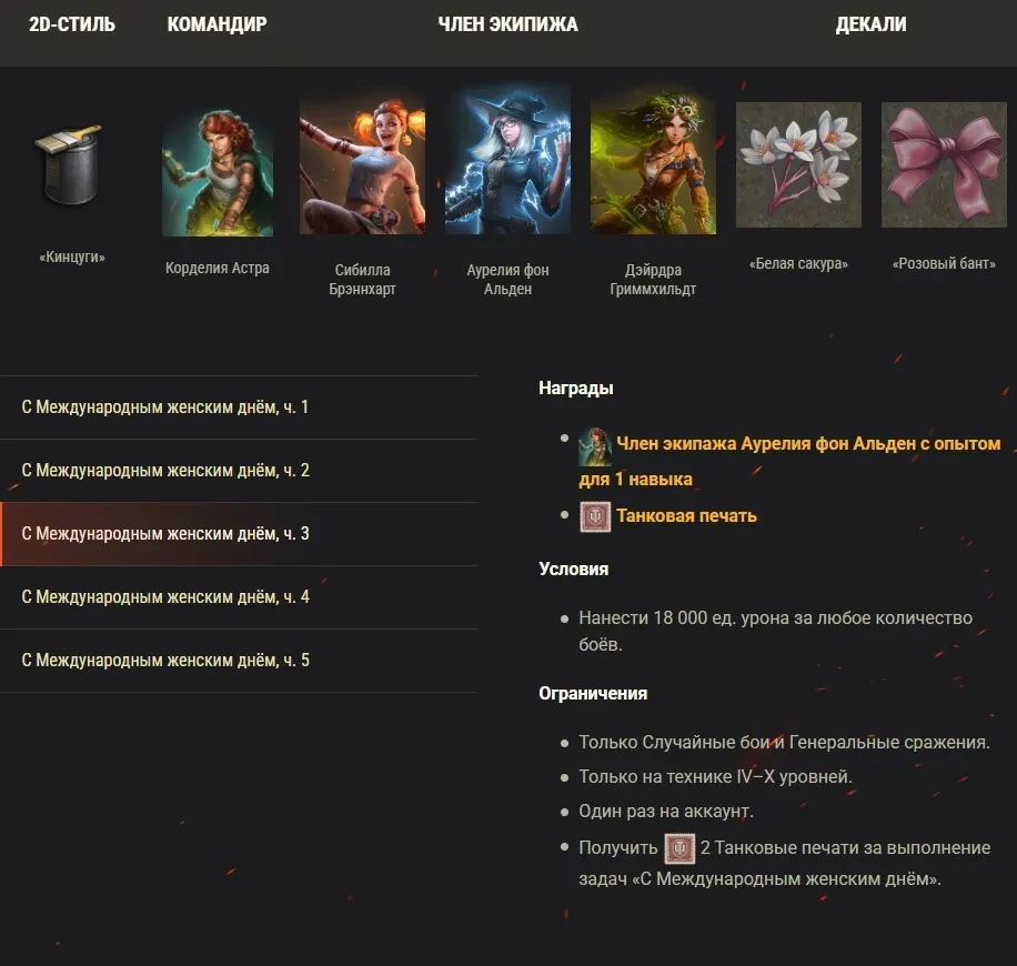 Задачи, Drops и акции в честь 50-летия Международного женского дня в World of Tanks!