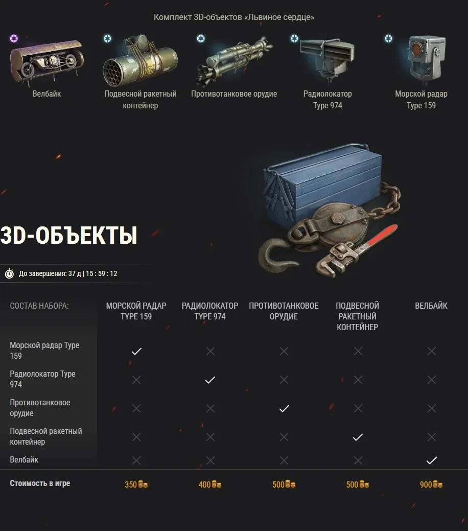 В первую партию предложений входят VIII 50TP prototyp, VIII ELC EVEN 90 и VIII СУ-130ПМ. У каждой из этих машин свой уникальный характер и стиль. А ещё до 13 января у вас будет возможность получить 3D-стили и новые 3D-объекты!