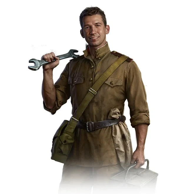 Повреждена гусеница? Не работает оптика? Башня не вращается? Дайте Токареву десять минут и его старый ящик с инструментами — вмиг всё починит. Для него нет мелких задач, и он никогда не боялся испачкать руки. На самом деле, никто и не помнит, чтобы они были чистыми. Сергей повидал многое и починил вдвое больше, попутно собрав бесценные знания о работе военного оборудования. Что бы ни сломалось, взорвалось или отвалилось — Сергей обязательно заставит это работать снова.