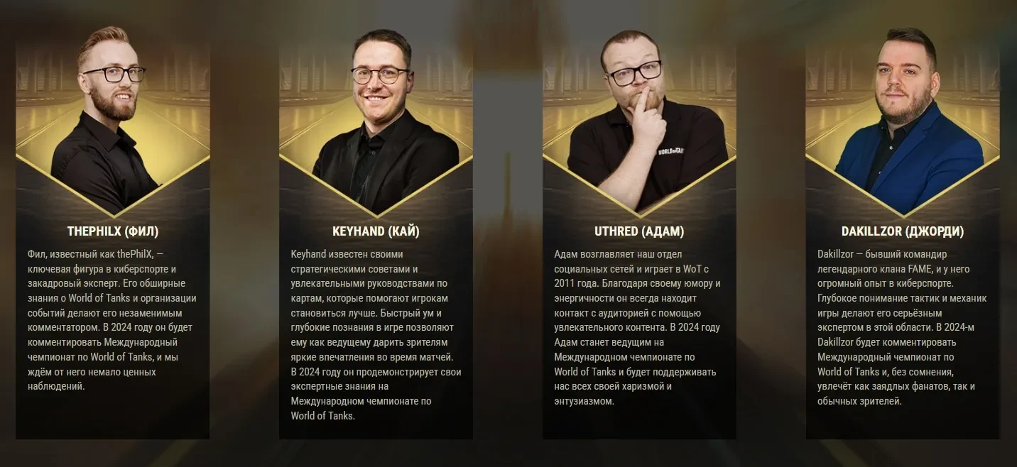 Наши ведущие и эксперты будут с вами на протяжении всех напряжённых боёв. Не забудьте связать свои аккаунты Wargaming и Twitch, чтобы не упустить возможность получить фантастические призы. Присоединяйтесь к нам на два захватывающих дня на официальном Twitch-канале World of Tanks.