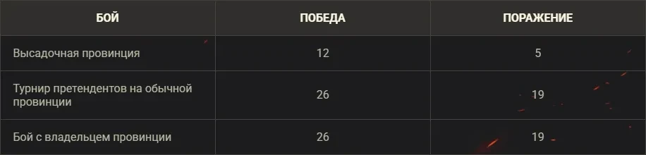 - В случае ничьей в битве за высадочную провинцию претендентам будет засчитано поражение.