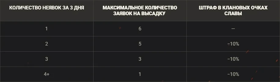 *** К кланам, игнорирующим механику штрафов и многократно их получающим, могут быть применены дополнительные меры по усмотрению Администрации.