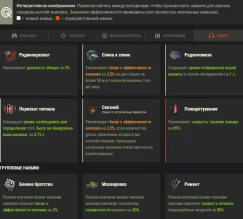 В подсказках к каждому навыку есть дополнительная информация, в том числе о его влиянии на ТТХ машины и т. д.