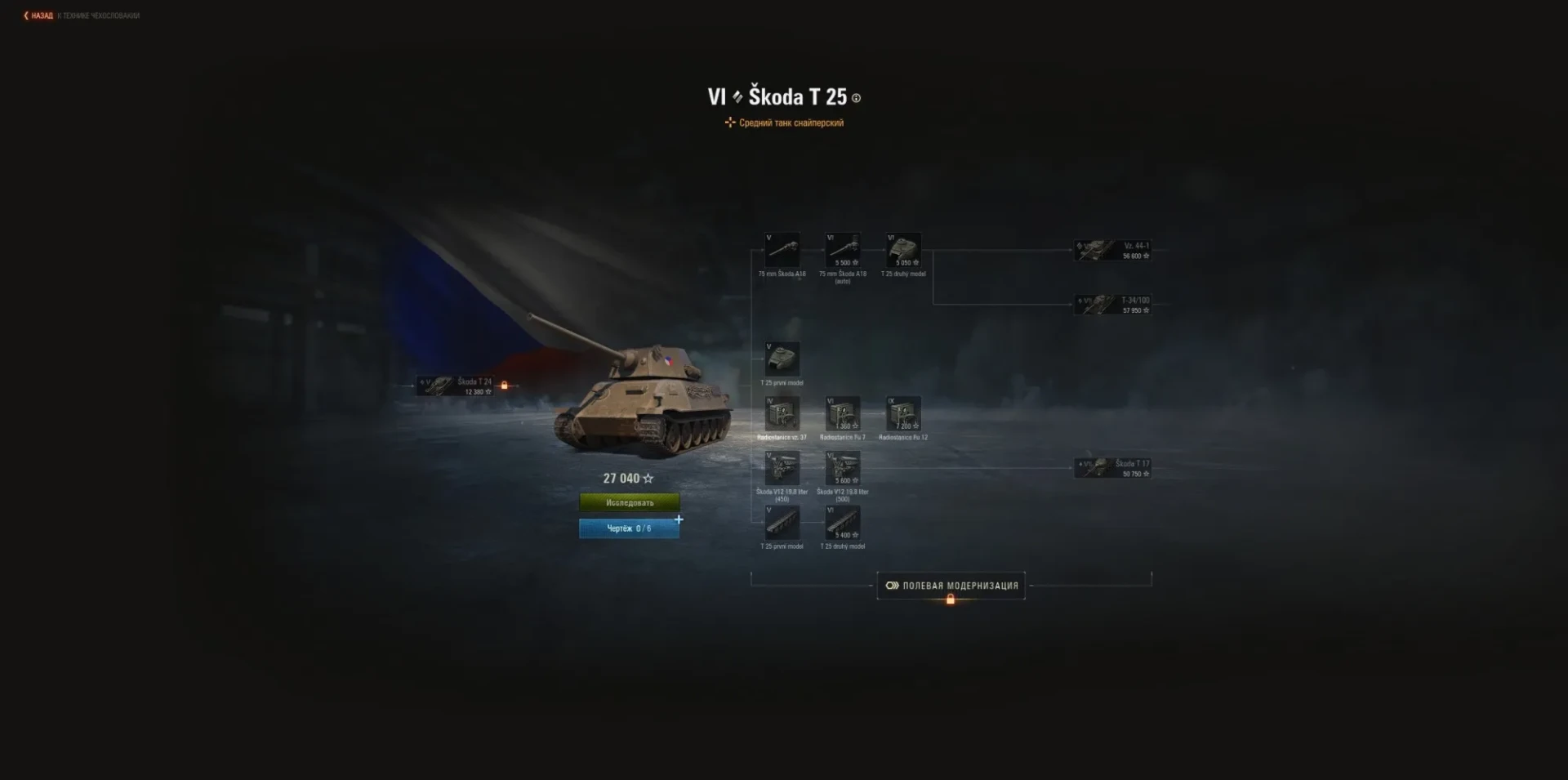 Итого: 691 500 ex. (опыта) вся подветка полностью напрямую с модулями, начиная с исследования самого 7-го уровня Škoda T 17.
