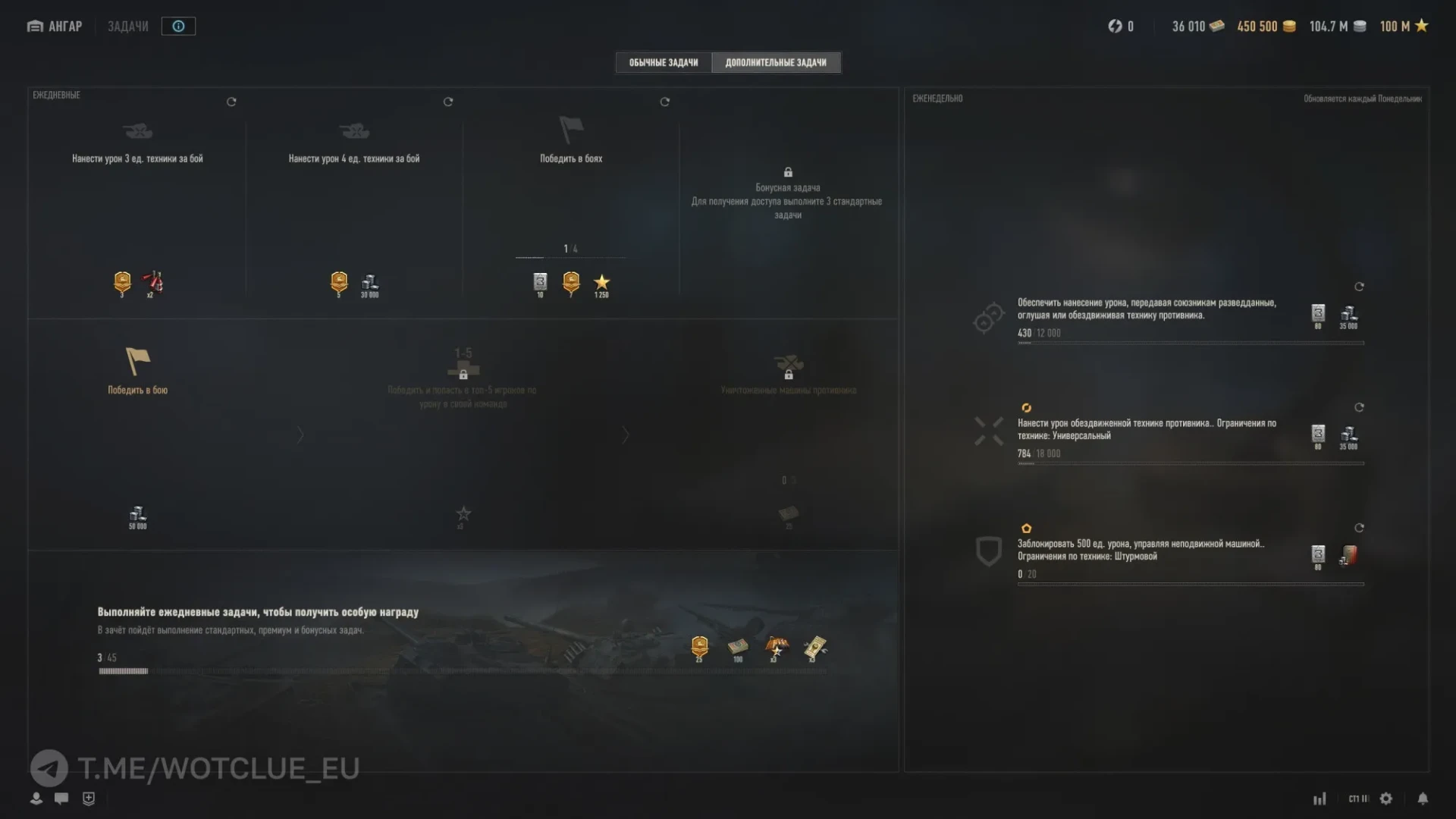 - Справа, где ранее находились ТТХ танка, появились актуальные события игры и ежедневные БЗ. Название танка и его опыт был перенесён на верхнею часть центра экрана.