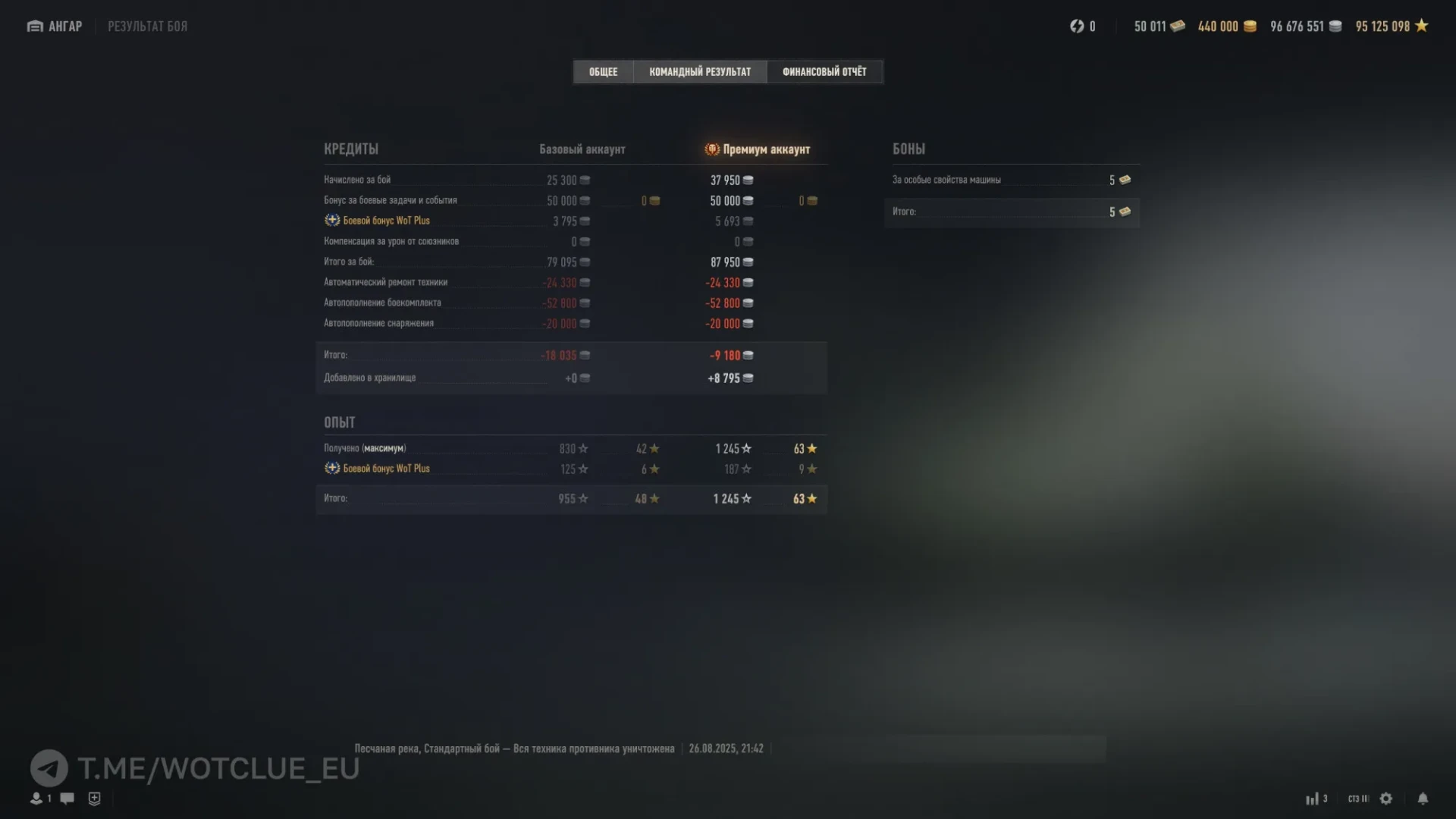 «Финансовый отчёт» стал немного удобнее, т.к. увеличили шрифт текста и теперь вглядываться в цифры становиться менее напряжённо. Здесь же добавлена строка с бонусом от WoT Plus, о новых фишках которого мы также писали ранее.