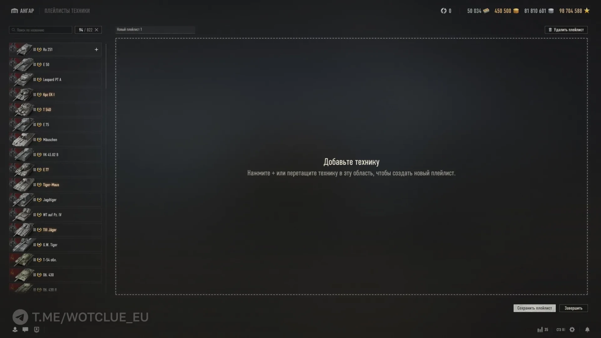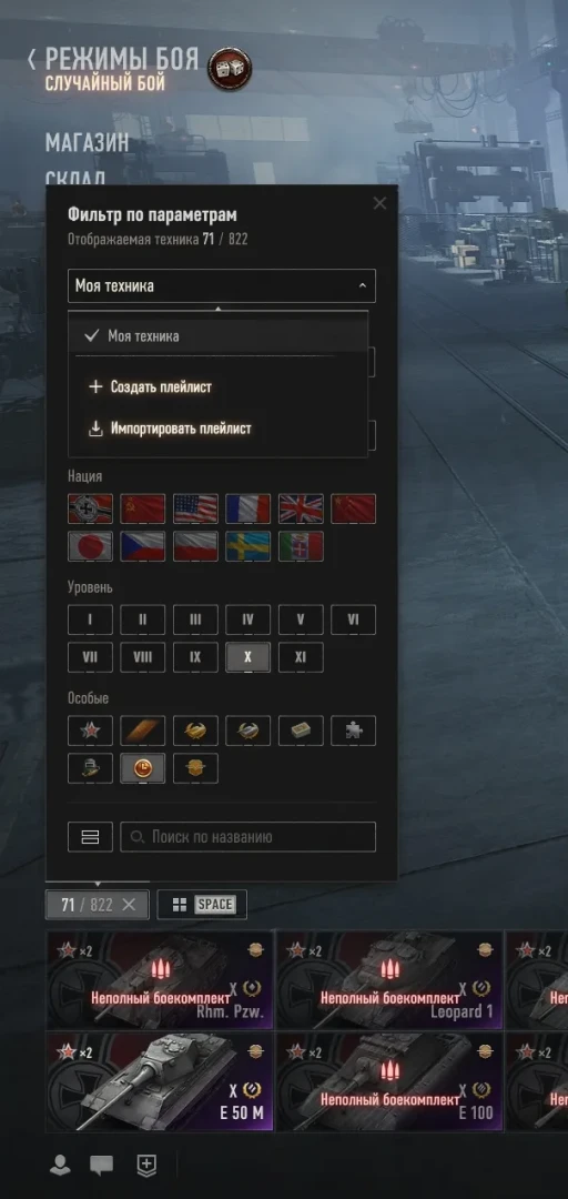 С выходом обновления 2.0 вы сможете создавать собственные плейлисты для игры на определённой технике. Например: фарм на 8 лвл, отметки на 10 уровне, Манёвры, прокачка техники или что-то другое — экспериментируйте сами.