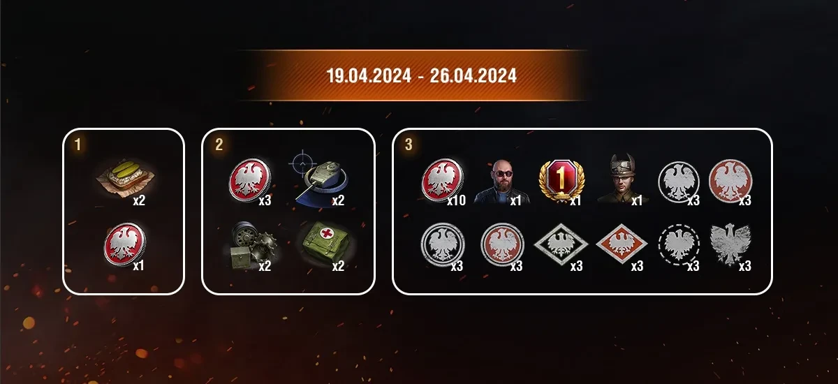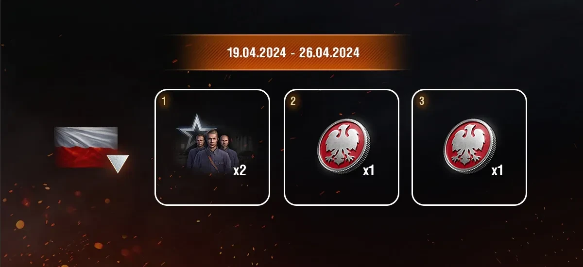 - Каждый день во время события будет появляться новая задача для любой техники IV уровня и выше. Выполните их и получите ещё больше «Белых орлов», уникальные исторические эмблемы Польши, особого командира Cygan и другие игровые ценности.