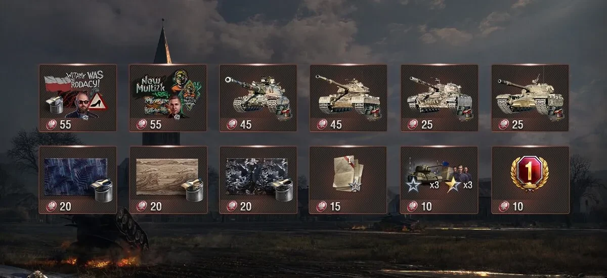 Во внутриигровом Магазине есть несколько тематических наборов, в которых вы найдёте такие классические машины Польши, как VI Pudel и II TKS z n.k.m. 20 mm , польские стили, а также снаряжение.