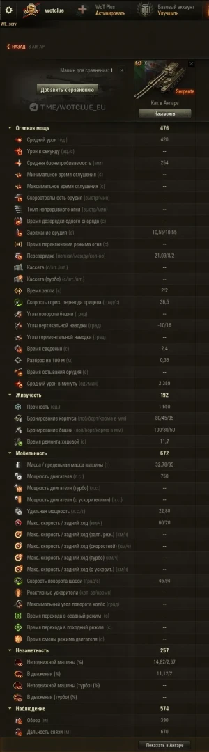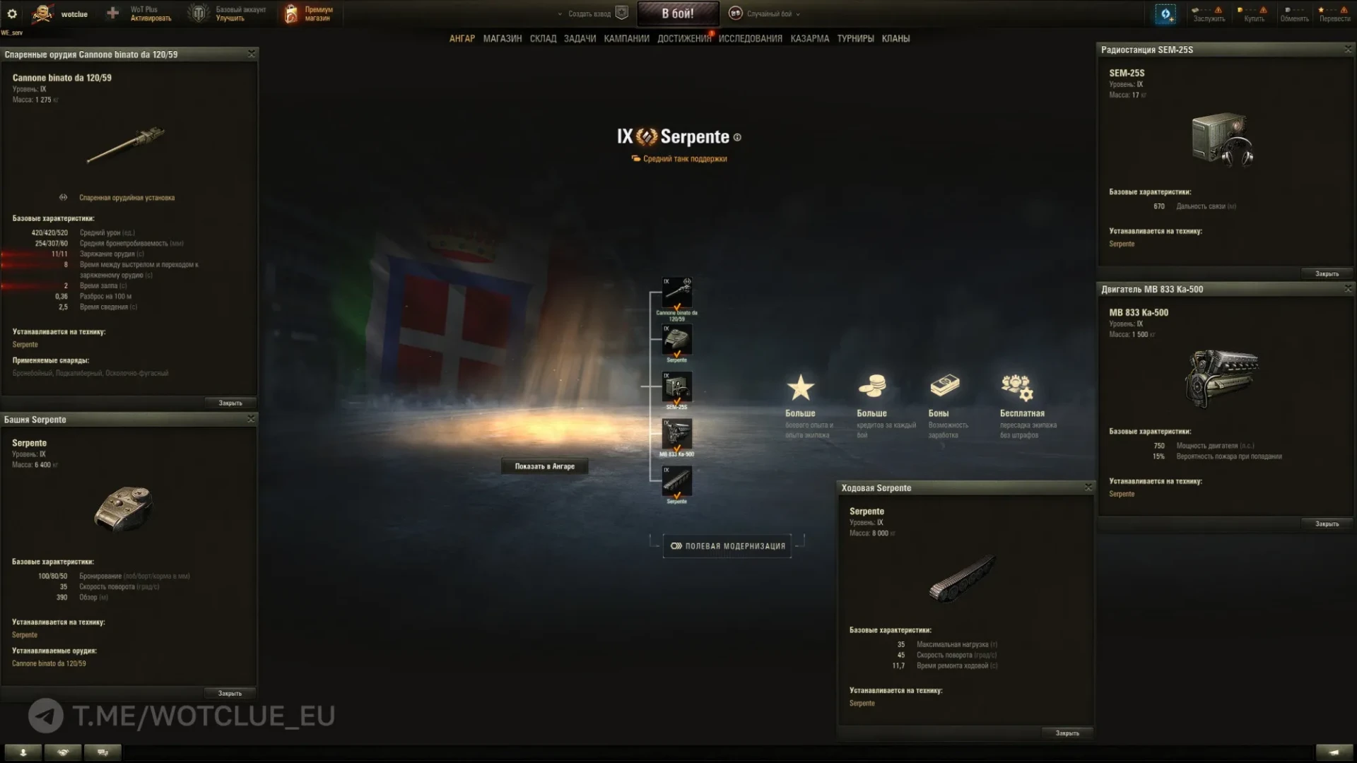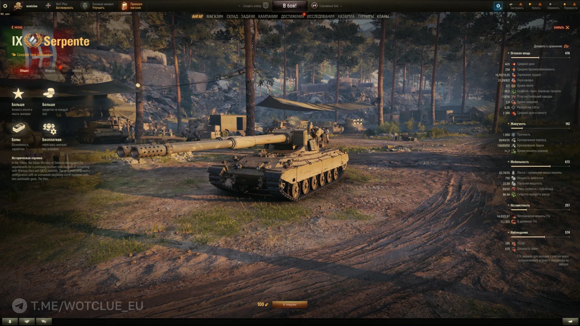 Serpente (Италия, СТ-9, прем, механика двуствольных орудий) вышел на этой неделе в четверг на супертест WOT.