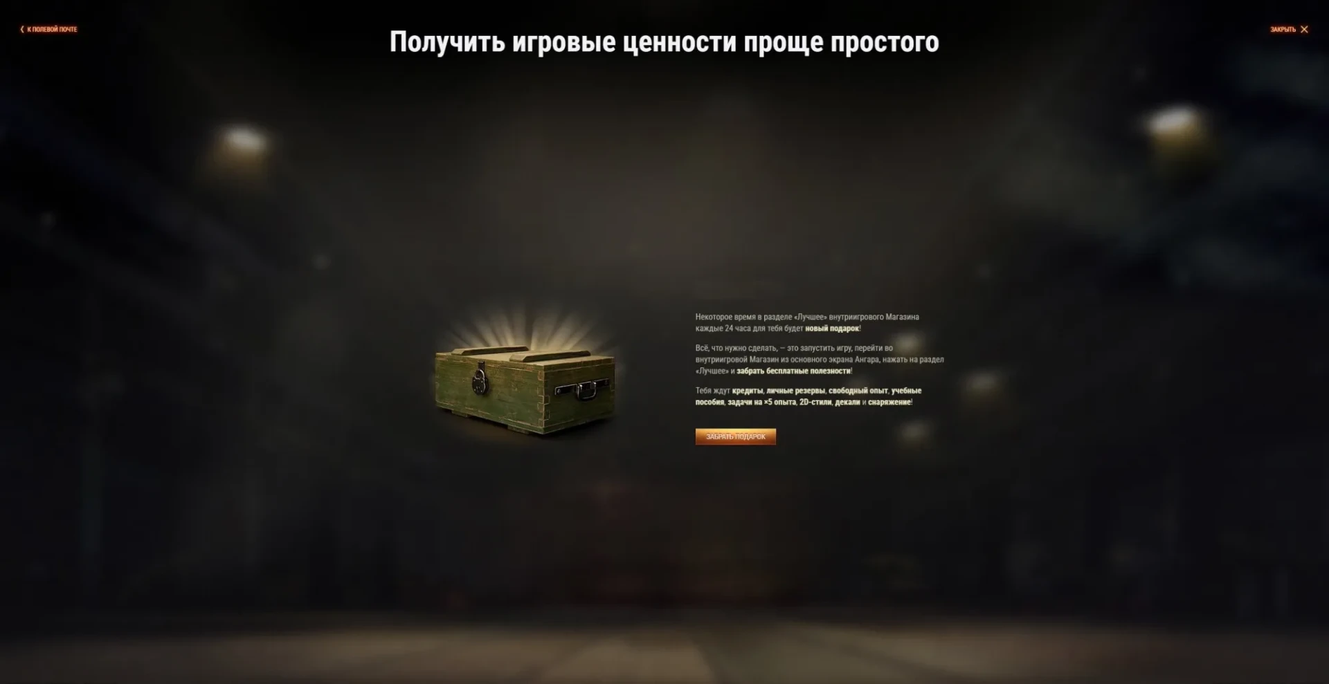 Вам должна прийти полевая почта, дабы появилась возможность забрать подарок в магазине. Обновляться награда будет каждый день. Из наград можно будет получить: