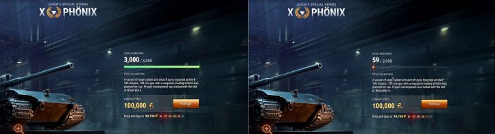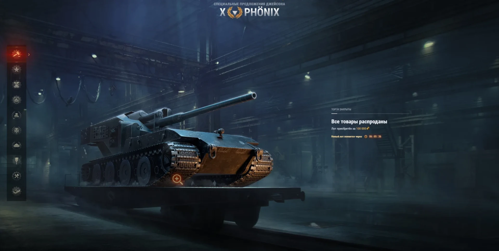 Минимально сыгранная ставка EU-региона для аукционного лота WT auf E 100 Phönix составила: 100 000 золота.