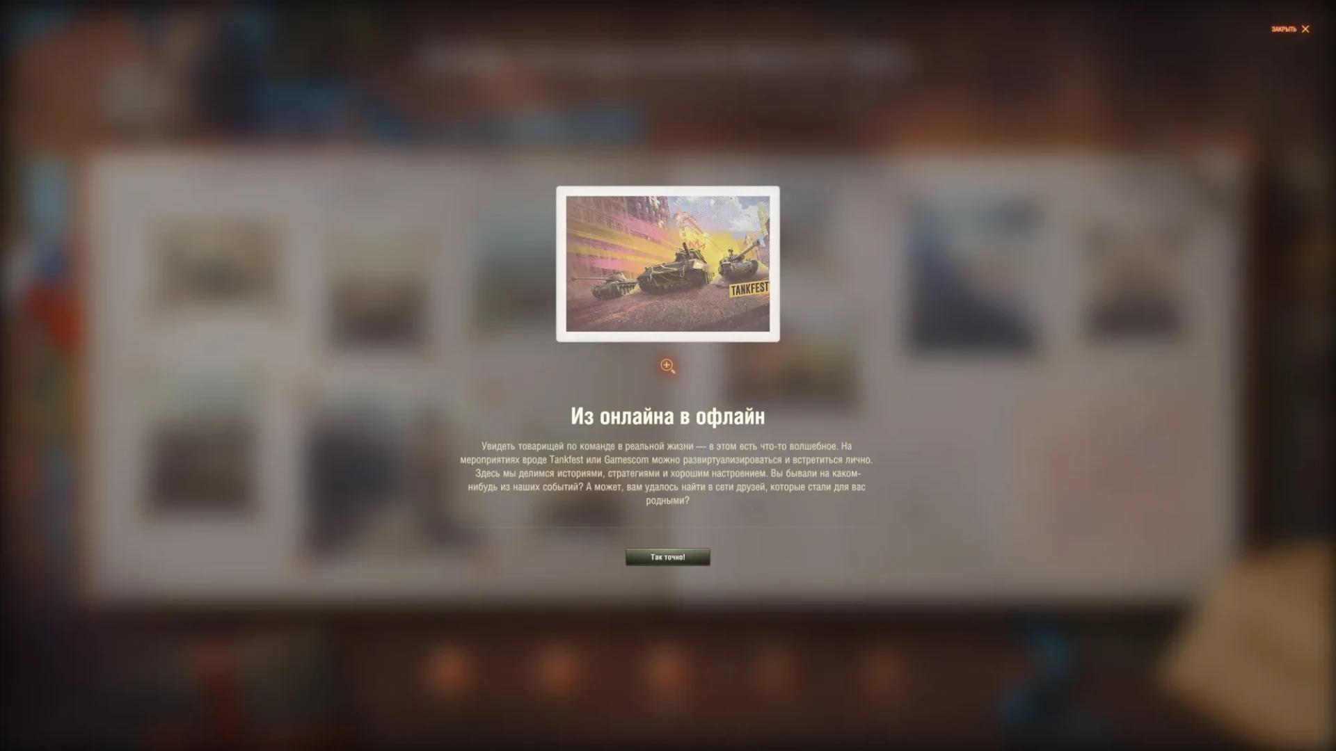 Увидеть товарищей по команде в реальной жизни — в это есть что-то волшебное. На мероприятиях вроде Tankfest или Gamescom можно развиртуализироваться и встретиться лично. Здесь мы делимся историями, стратегиями и хорошим настроением. Вы бывали на каком-нибудь из наших событий? А может, вам удалось найти в сети друзей, которые стали для вас родными?